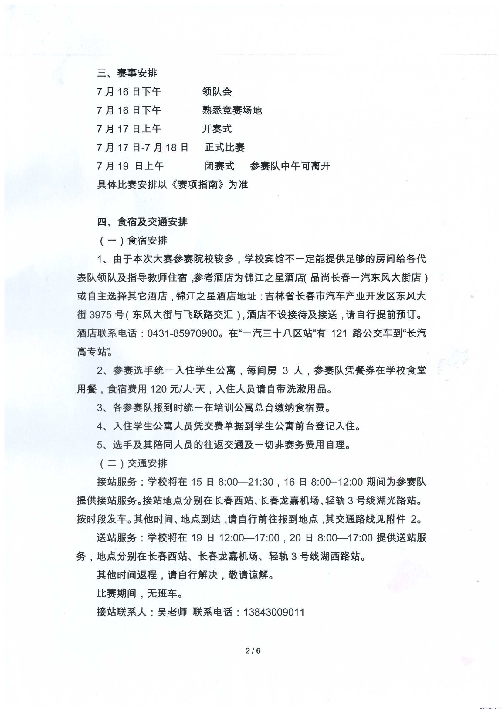 (三)比赛地点:长春汽车工业高等专科学校(地址:吉林省长春市东风大街9999号)。